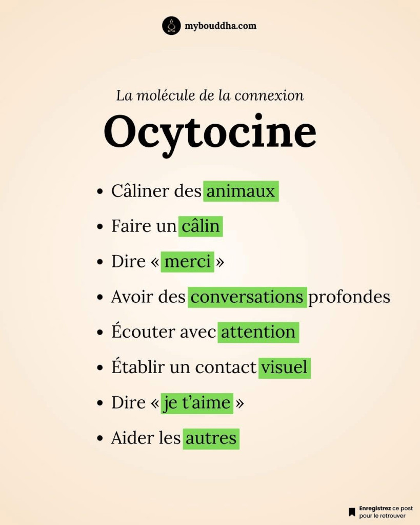 → L’hormone du lien et de l’attachement.